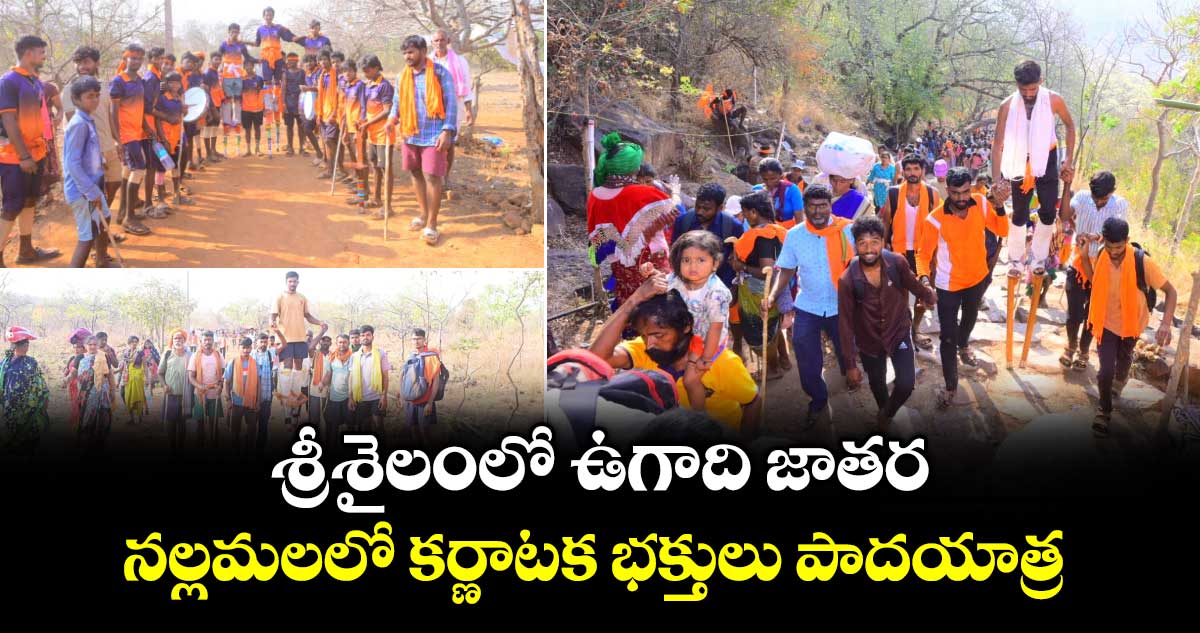 శ్రీశైలంలో ఈనెల 16 నుండి 20 వరకు ఉగాది మహోత్సవాలు వైభవంగా జరగనున్నాయి . దేవాది దేవుడిని తనివితీరా దర్శించుకునేందుకు నల్లమల అడవి మార్గం నుండి కాలినడకన పాదయాత్రగా కన్నడ భక్తులు వేలాది తరలివస్తున్నారు. నల్లమల అంత ఓంకారనాదంతో ప్రతిధ్వనిస్తోంది . ..ఉగాది పర్వదినం సమీపిస్తుండటంతో శ్రీగిరి మల్లయ్యను ధ్యాన మల్లన్న తండ్రి ..అదుకో అంటూ… ఆర్తితో పిలుస్తూ శ్రీగిరి కొండకు చేరుకుంటున్నారు మల్లన్న కన్నబ భక్తులు.