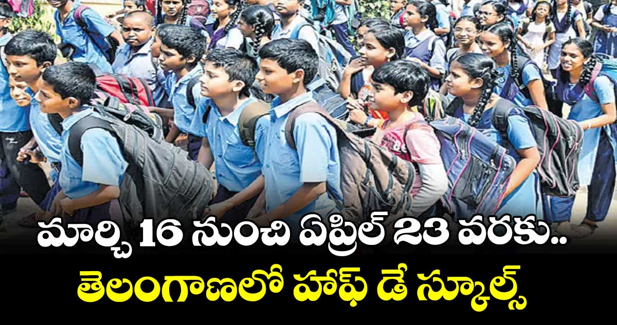 రాష్ట్రంలో పాఠశాలలకు హాఫ్ డే స్కూల్స్ షెడ్యూల్ ను విద్యాశాఖ ప్రకటించింది. మార్చి16నుంచి ఏప్రిల్ 23 వరకు ఒంటిపూట బడులు నిర్వహించనున్నట్లు తెలిపింది. ఉదయం 8గంటలనుంచి మధ్యాహ్నం 12.30 గంటల వరకు స్కూల్స్ నడపనున్నారు. పదో తరగతి విద్యార్థులకు యధావిధిగా స్పెషల్ క్లాసులు నిర్వహించనున్నట్లు తెలంగాణ విద్యాశాఖ ఉత్తర్వులు జారీ చేసింది.