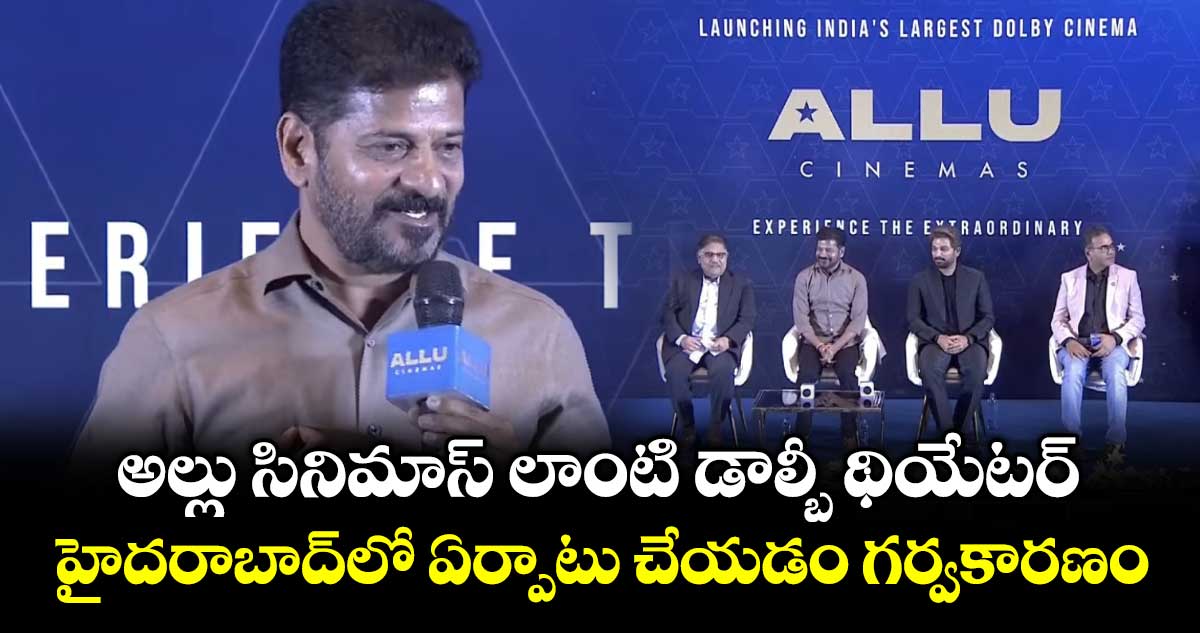 హైదరాబాద్ సిటీలో అల్లు సినిమాస్ లాంటి పెద్ద డాల్బీ థియేటర్ ఏర్పాటు చేయడం గర్వకారణం అన్నారు సీఎం రేవంత్ రెడ్డి. గురువారం (మార్చి 12) అల్లు సినిమాస్ థియేటర్ ప్రారంభించిన సీఎం.. డాల్బీ థియేటర్ రాష్ట్రానికి, దేశానికి గర్వకారణం అని కొనియాడారు. అందుకోసం కృషి చేసిన అల్లు అరవింద్ ను అభినందించారు. తెలుగు సినిమా హాలీవుడ్ తో పోటీ పడాలని.. అందుకు కావాల్సిన సహాయ సహకరాలు ప్రభుత్వం తరఫున అందిస్తామని ఈ సందర్భంగా సీఎం రేవంత్ చెప్పారు.