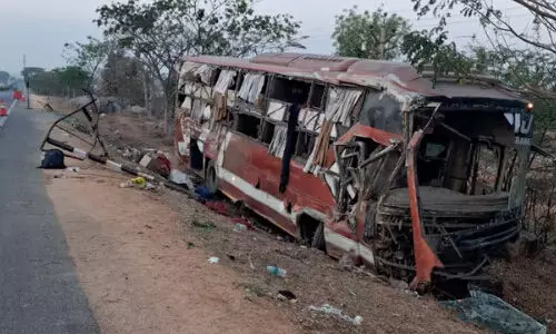ఇందల్వాయి: నిజామాబాద్ జిల్లా ఇందల్వాయిలో ఘోర రోడ్డు ప్రమాదం జరిగింది. శుక్రవారం తెల్లవారుజామున రెండు గంటల ప్రాంతంలో గన్నారం వద్ద జాతీయ రహదారిపై ప్రైవేటు ట్రావెల్స్ బస్సు బోల్తాపడడంతో నలుగురు దుర్మరణం చెందారు. ఈ ప్రమాదంలో పలువురు గాయపడడంతో ఆస్పత్రికి తరలించారు. 22 మంది ప్రయాణికులతో బస్సు హైదరాబాద్ నుంచి మహారాష్ట్రలోని అకోలాకు వెళ్తుండగా ఈ ప్రమాదం సంభవించింది. అతివేగమే ఈ ప్రమాదానికి కారణమని తెలుస్తోంది. పోలీసులు ఘటనా స్థలానికి చేరుకొని సహాయక చర్యలు చేపట్టారు. పోలీసులు కేసు నమోదు చేసి దర్యాప్తు చేస్తున్నారు.