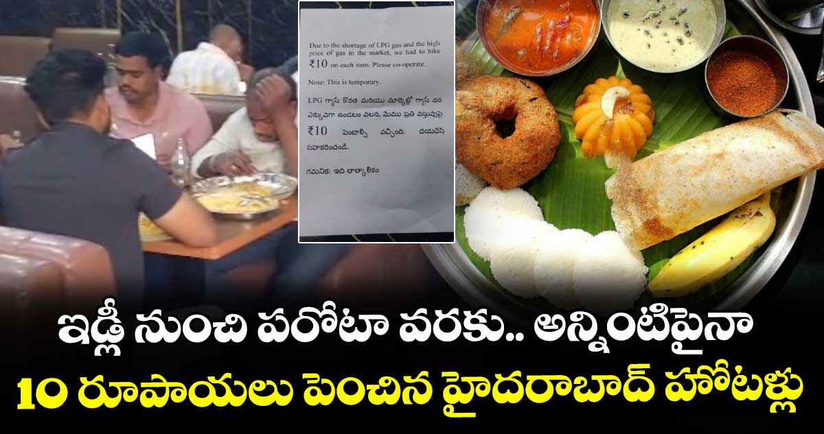 ఇడ్లీ నుంచి పరోటా వరకు.. అన్నింటిపైనా 10 రూపాయలు పెంచేసిన హోటళ్లు