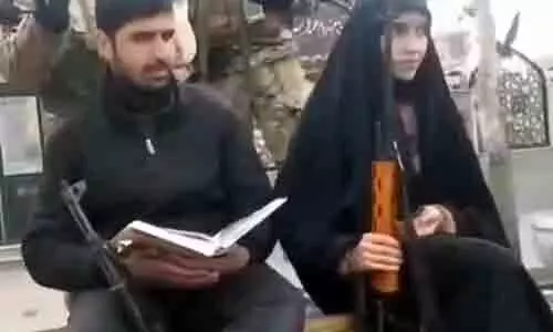 టెహరాన్: ఇరాన్లోని టెహరాన్లో శుక్రవారం అత్యంత అరుదైన చూడముచ్చటైన పెళ్లి తంతు వేడుక జరిగింది. ఇజ్రాయెల్, అమెరికా దాడుల , భీకర పేలుళ్ల చప్పుళ్ల మధ్య ఓ జంట పెళ్లిచేసుకుంది. ఓ సైనిక స్థావరంలో మందుగుండు సామాగ్రి పెట్టెపై కూర్చుని ఉన్న నవ వధూవరులు చేతుల్లో తమ దేశ సైన్యానికి చెందిన రైఫిల్ష్ పట్టుకున్నారు. వారి పక్కన భారీ మెషిన్ గన్ అమర్చి ఉంచారు. చుట్టూ సాయుధులైన మద్దతుదార్లు నిలచి ఉండగా ఈ ఇద్దరూ పెళ్లినాటి ప్రమాణాలకు దిగారు.