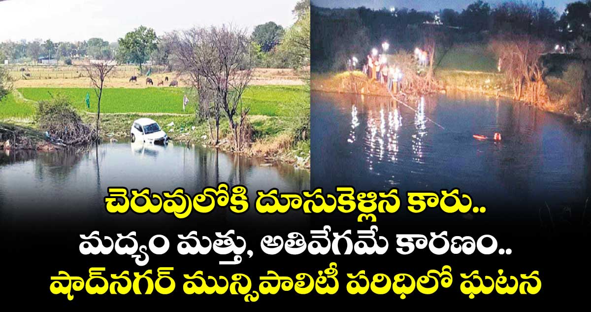 షాద్ నగర్, వెలుగు: మద్యం మత్తుకు అతివేగం తోడవడంతో ఓ కారు అదుపుతప్పి చెరువులోకి దూసుకెళ్లింది. షాద్నగర్ మున్సిపాలిటీ పరిధిలోని చటన్పల్లి వద్ద బుధవారం రాత్రి ఈ ఘటన చోటుచేసుకుంది.
