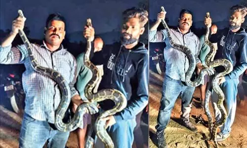అమరావతి: లేఔట్లో ఆరు కొండ చిలువలు కనిపించిన సంఘటన విశాఖపట్నం జిల్లా పరవాడ మండలంలో జరిగింది. పెద్దముషిడివాడ గ్రామంలోని ఓ లేఔట్లోని సిమెంట్ పైపుల్లో కొండచిలువలు కనిపించడంతో స్థానికులు భయంతో వణికిపోయారు. వెంటేన అటవీ శాఖ, స్నేక్ క్యాచర్ లకు సమాచారం ఇచ్చారు. పైపులను జెసిబిలతో తొలగించే క్రమంలో రెండు కొండ చిలువలు మృతి చెందాయి. మిగిలిన నాలుగు కొండచిలువలను స్నేక్ క్యాచర్స్ పట్టుకొని అటవీ శాఖ అధికారులకు అప్పగించారు. అటవీ శాఖ సిబ్బంది కొండచిలువలను యారాడ కొండల్లో విడిచిపెట్టారు. ఒక్కొక్కటి 12 అడుగుల పొడవు ఉన్నాయని తెలిపారు.