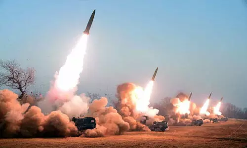 ప్రపంచ యుద్ధ భయాల వేళ ఉత్తర కొరియా భారీ స్థాయి బలప్రదర్శనకు దిగింది. ఒకేరోజు వరుసగా పది బాలిస్టిక్ క్షిపణులను శనివారం తూర్పు సముద్రం వైపు విజయవంతంగా ప్రయోగించింది. ఈ విషయాన్ని ఉత్తర కొరియా సైన్యం ప్రకటించింది. ఓ వైపు తమ శత్రుదేశం దక్షిణ కొరియా అమెరికాతో కలిసి సైనిక విన్యాసాలకు దిగిన దశలో కిమ్ ఈ చర్యకు దిగారు. ఈ ప్రయోగ పరీక్షలను దేశ అధినేత కిమ్ తన 13 ఏండ్ల కుమార్తె కిమ్ జు యేతో కలిసి కాన్షరెన్స్ హాల్లో కూర్చుని ఉత్సాహంగా తిలకించారు. చప్పట్లు చరిచారు. దేశ రాజధాని ప్యాంగాంగ్కు వద్ద ఓ చోటు నుంచి ఈ క్షిపణును పరీక్షించినట్లు దేశ సైనిక బలగాల సంయుక్త అధినేత తెలిపారు. ఈ పరీక్షలపై జపాన్ ఆందోళన వ్యక్తం చేసింది. సముద్రంలో పయనించిన ఈ క్షిపణులు కొన్ని తమ దేశ నిర్ణీత ఆర్థిక వాణిజ్య కేంద్రాల వెలుపలి జలాల్లో వచ్చిపడ్డాయని మండిపడ్డారు.