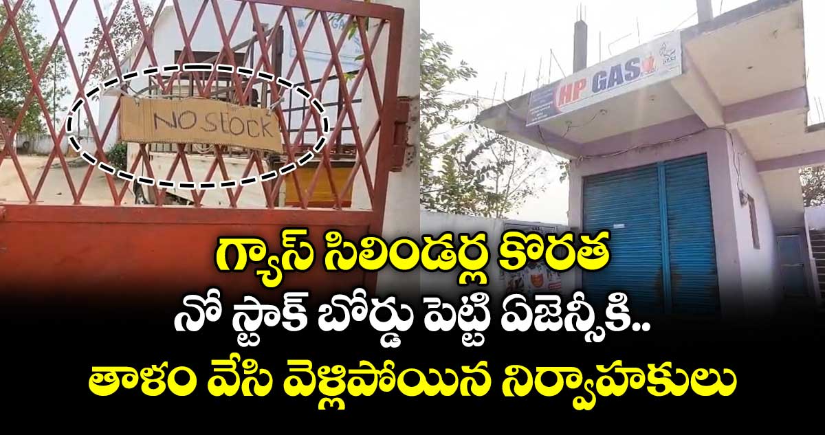ఆసిఫాబాద్: కుమ్రం బీమ్ జిల్లాలో గ్యాస్ సిలిండర్ల కొరత ఏర్పడింది. గ్యా్స్ ఏజెన్సీ, గోడౌన్ నిర్వాహకులు నో స్టాక్ బోర్డు పెట్టి తాళం వేసి వెళ్లిపోయారు. కార్యాలయం మూసివేసి ఉన్న తర్వాత తాళం చూసి తిరిగి వెళ్లిపోతున్నారు. గత రెండు రోజులుగా సిలిండర్లు ఇవ్వడం లేదని స్థానికులు చెప్పారు.