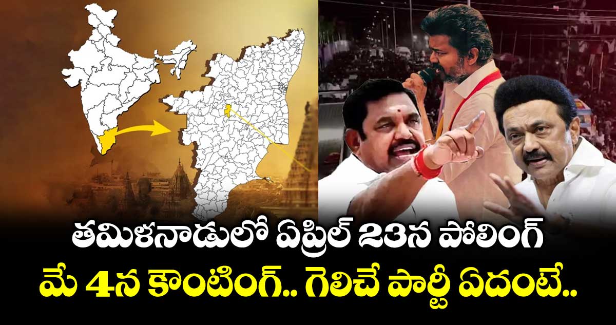 చెన్నై: కేంద్ర ఎన్నికల సంఘం తమిళనాడు అసెంబ్లీ ఎన్నికల షెడ్యూల్ ప్రకటించింది. తమిళనాడులో ఏప్రిల్ 23న అసెంబ్లీ ఎన్నికలు జరగనున్నాయి. మే 4న ఎన్నికల ఫలితాలను ఎన్నికల సంఘం ప్రకటించనుంది. 234 అసెంబ్లీ సీట్లు ఉన్న తమిళనాడులో సింగిల్ ఫేజ్లోనే ఎన్నికలను నిర్వహించాలని కేంద్ర ఎన్నికల సంఘం నిర్ణయించింది. 2026 అసెంబ్లీ ఎన్నికలలో డీఎంకే కూటమి, ఏడీఎంకే-బీజేపీ కూటమి, మూడో పక్షమైన విజయ్ టీవీకే పార్టీ మధ్య త్రిముఖ పోటీ జరిగే అవకాశం ఉంది.