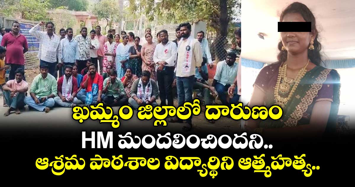 ఖమ్మం జిల్లాలో దారుణం జరిగింది. జిల్లాలోని ముదిగొండ మండలంలో ఉన్న వల్లభి ప్రభుత్వ బాలికల ఆశ్రమ పాఠశాలలో HM, హాస్టల్ వర్కర్ మందలించారని తొమ్మిదవ తరగతి విద్యార్థిని ఆత్మహత్య చేసుకుంది. ఆదివారం ( మార్చి 15 ) జరిగిన ఈ ఘటనకు సంబంధించి వివరాలిలా ఉన్నాయి..