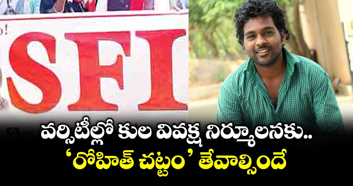 హైదరాబాద్, వెలుగు: దేశంలోని ఉన్నత విద్యాసంస్థలు, యూనివర్సిటీల్లోని కుల వివక్ష నిర్మూలనకు రోహిత్ చట్టం తీసుకురావాల్సిందేనని ఎస్ఎఫ్ఐ నేతలు డిమాండ్చేశారు. ఆదివారం హైదరాబాద్లోని సీఐటీయూ రాష్ట్ర కార్యాలయంలో ఎస్ఎఫ్ఐ రాష్ట్ర అధ్యక్షుడు ఎస్. రజనీకాంత్ అధ్యక్షతన రాష్ట్ర సదస్సును నిర్వహించి ఏకగ్రీవంగా తీర్మానం చేశారు.