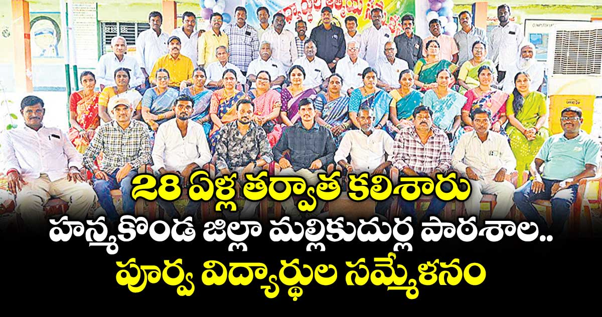 హనుమకొండ జిల్లా వేలేరు మండలం మల్లికుదుర్ల ప్రభుత్వ పాఠశాలలో 10వ తరగతి 1997-–98 బ్యాచ్ విద్యార్థులు 28 ఏళ్ల తర్వాత ఒకే వేదికపై కలుసుకున్నారు. పాఠశాల ప్రాంగణంలో నిర్వహించిన పూర్వవిద్యార్థుల ఆత్మీయ సమ్మేళనంలో వారికి విద్యనేర్పిన గురువులను సత్కరించారు. వారి చిన్ననాటి జ్ఞాపకాలను గుర్తుకు చేసుకుని సంతోషంగా గడిపారు. కార్యక్రమంలో హెడ్ మాస్టర్ ప్రభాకర్, ఉపాధ్యాయులు సత్యపాల్ రెడ్డి, షూకూర్, చంద్రయ్య, కిష్టయ్య, శాంతయ్య, సత్యప్రకాశ్, యాదవ రెడ్డి, అన్నపూర్ణ, శైలజ, పలువురు పూర్వ విద్యార్థులు, విద్యార్థినులు పాల్గొన్నారు. – ధర్మసాగర్, వెలుగు