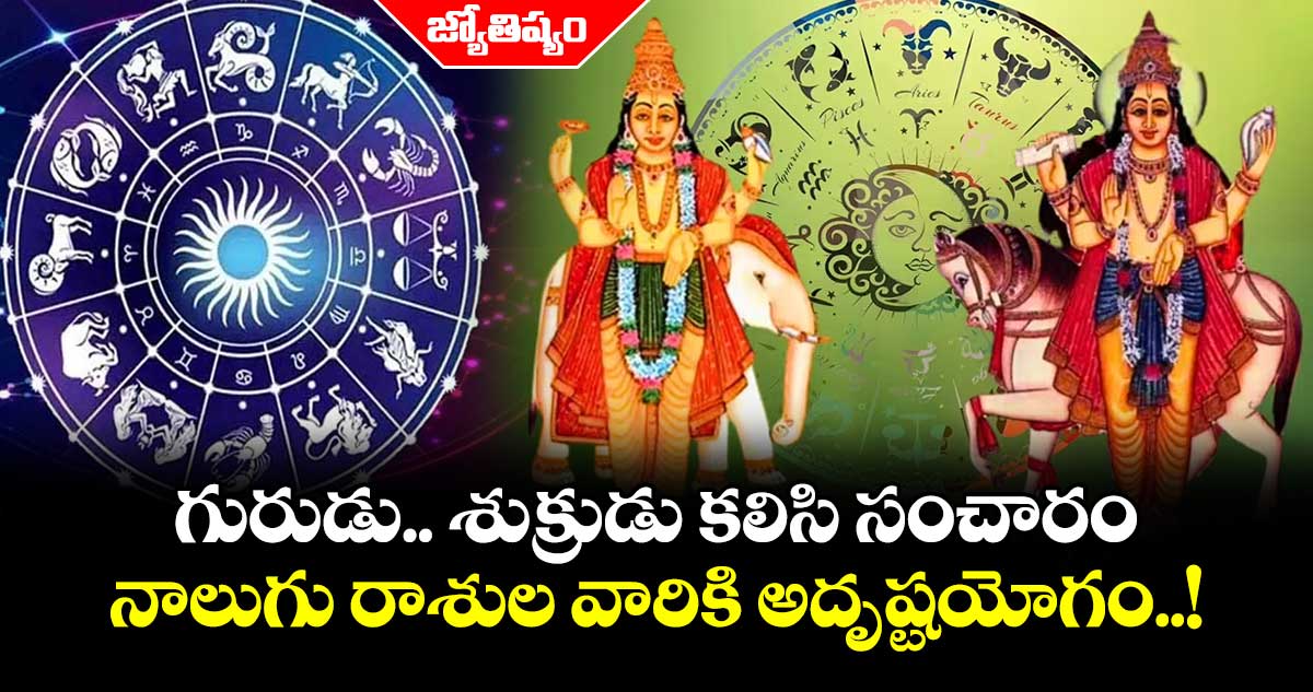 జ్యోతిష్యశాస్త్రంలో గురుడు.. శుక్రుడు.. గురు గ్రహం, శుక్ర గ్రహం.. ఈ రెండూ కూడా ముఖ్యమైన గ్రహాలు. గ్రహాలు ఎప్పటికప్పుడు వాటి రాశులను మారుస్తూ ఉంటాయి. ఆ సమయంలో అన్ని రాశులపై ప్రభావం పడుతుంది. మార్చి 18న గురువు, శుక్రుడు కలిసి దృష్టి యోగ కేంద్రాన్ని ఏర్పరుస్తారు. దీని ప్రభావం వలన నాలుగు రాశుల వారికి అదృష్ట యోగం పడుతుందని జ్యోతిష్య పండితులు చెబుతున్నారు. ఈ గ్రహాల కలయిక వలన ఏర్పడిన శుభయోగం ప్రభావం 6 నెలలు ఉంటుంది. ఇప్పుడు ఆ రాశుల గురించి తెలుసుకుందాం. . !