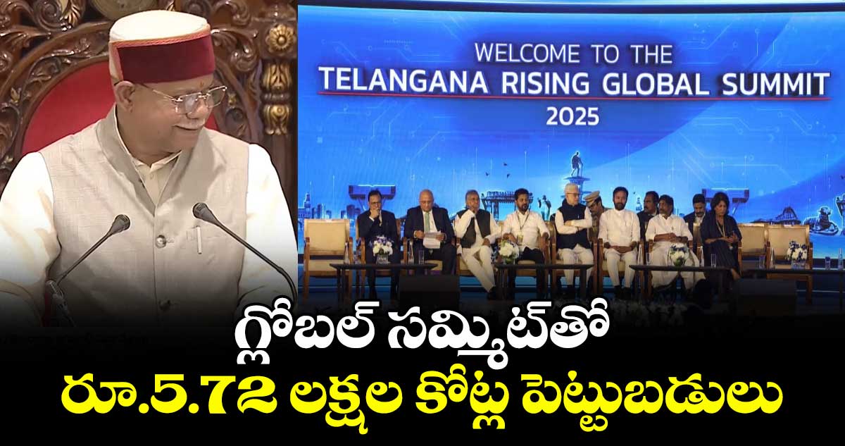 అభివృద్ధిలో తెలంగాణను గ్లోబల్ హబ్ గా మారుస్తామన్నారు గవర్నర్ శివప్రతాప్ శుక్లా. గ్లోబల్ సమ్మిట్ ద్వారా తెలంగాణకు రూ.5.72 లక్షల కోట్ల పెట్టుబడులు వచ్చినట్లు తెలిపారు. సోమవారం (మార్చి 16) అసెంబ్లీ సమావేశాల్లో భాగంగా ప్రసంగం చదివిన గవర్నర్.. తెలంగాణను రైజింగ్ 47 దిశగా ముందుకు తీసుకెళ్తున్నట్లు చెప్పారు.