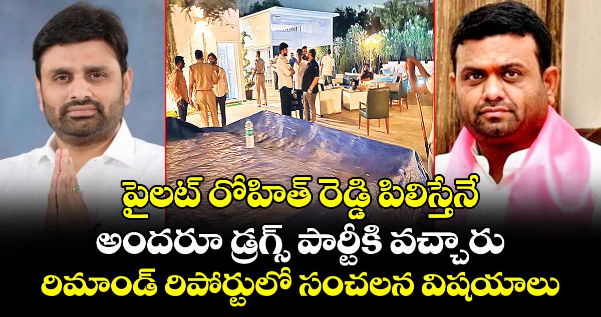 - పైలట్ రోహిత్ రెడ్డి, రితేష్ రెడ్డి అర్జున్, రెడ్డిలు కొకైన్ తీసుకున్నట్లుగా రిపోర్ట్ వచ్చింది.