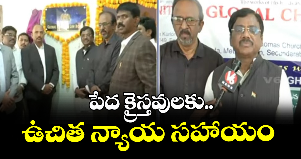 హైదరాబాద్: పేద క్రైస్తవులకు ఉచిత న్యాయ సహాయం అందించే లక్ష్యంతో గ్లోబల్ క్రిస్టియస్ లా బోర్డ్ ప్రారంభించినట్లు కార్మికశాఖ మంత్రి వివేక్ వెంకటస్వామి అన్నారు. సికింద్రాబాద్లో ని మెట్టుగూడలో కొత్తగా ఏర్పాటు చేసిన గ్లోబల్ క్రిస్టియన్ లా బోర్డ్ కార్యాలయాన్ని మంత్రి వివేక్ ప్రారంభించారు. దీనిలో భాగంగా ఆయన మా ట్లాడుతూ.. క్రైస్తవ సమాజం ఎదుర్కొంటున్న లీగల్ సమస్యలను పరిష్కరించేందుకు బోర్డు ఏర్పాటు చేసినట్లు చెప్పారు. ఈ లాంటి లక్ష్యం తో బోర్డును స్థాపించడం అభినందనీయమని మంత్రి తెలిపారు.