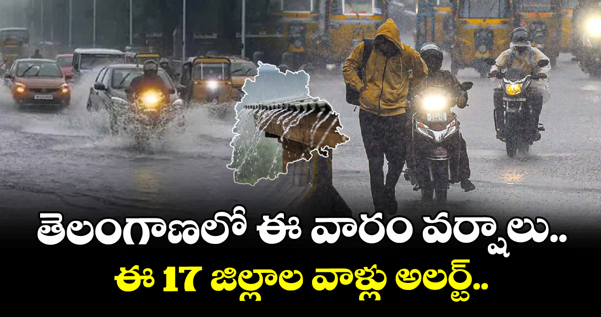 మార్చి16 , 17న తెలంగాణలోని కొన్ని జిల్లాలలో ఉరుములు మెరుపులు ,30 నుండి 40 కి.మీ వేగంతో కూడిన ఈదురుగాలులు తో కూడిన వర్షాలు అక్కడక్కడ కురిసే అవకాశం ఉంది. మార్చి 16 న 17 జిల్లాల్లో వర్షాలు కురిసే అవకాశం ఉండటంతో ఎల్లో అలెర్ట్ జారీ చేసింది వాతావరణ శాఖ. అదిలాబాద్, కొమరంభీమ్ ఆసిఫాబాద్, మంచిర్యాల, నిర్మల్, నిజామాబాద్, పెద్దపల్లి, జయశంకర్ భూపాలపల్లి, ములుగు, భద్రాద్రి కొత్తగూడెం ,రంగారెడ్డి ,హైదరాబాద్, మేడ్చల్ మల్కాజిగిరి, వికారాబాద్ ,సంగారెడ్డి ,మెదక్, కామారెడ్డి జిల్లాలకు వర్ష సూచన చేసింది