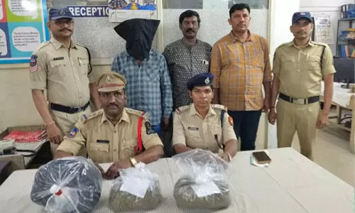 మన తెలంగాణ/కాచిగూడ : హైదరాబాద్ నగరంలో మరోసారి మత్తు పదార్థాల రవాణా బయటపడింది. గుట్టు చప్పుడు కాకుండా గంజాయిని కొనుగోలు చేసి నగరంలో అమ్మడానికి తీసుకొచ్చిన ఓ పాత నేరస్థుడిన్ని కాచిగూడ రైల్వే పోలీసులు అరెస్ట్ చేసి రిమాండ్ కు తరలించారు. సోమవారం కాచిగూడ రైల్వే పోలీస్ స్టేషన్ లో ఏర్పాటు చేసిన మీడియా సమావేశంలో రైల్వే పోలీస్ ఇన్స్ స్పెక్టర్ ఆర్.ఎల్లప్ప, ఆర్పిఎఫ్ ఎస్ఐ రజిత వివరాలు వెల్లడించారు. పాతబస్తీలోని యాకుత్ పురకు చెందిన మహ్మద్ అబ్దు ల్ హసన్ (32) పాత నేరస్థుడు. గతంలో నాలుగైదు పోలీస్ స్టేషన్ల పరిధిలో నేరం చేసినట్టు కేసులు నమోదయ్యాయి. నాందేడ్ లో 2కిలో ల గంజాయిన కొనుగోలు చేసి హైదరాబాద్ లో అమ్మడానికి తీసుకొచ్చాడు. దీని విలువ దాదాపు రూ.1లక్ష వరకు ఉంటుంది. కాచిగూడ రైల్వే స్టేషన్ లో 3వ ప్లాట్ ఫాంపై అనుమానస్పదంగా తిరుగుతుండగా రైల్వే పోలీసులు తనిఖీలు చేపట్టారు. మహ్మద్ అబ్దుల్ హసన్ వద్ద ఉన్న బ్యాగును తనిఖీ చేయగా అందు లో 2కిలోల గంజాయి ఉంది. పోలీసులు గంజాయిని స్వాధీనం చేసుకుని అరెస్ట్ చేసి రిమాండ్ కు తరలించారు.