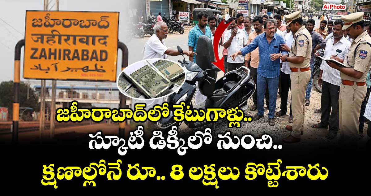 పట్టపగలే దొంగలు రెచ్చిపోతున్నారు. జల్సాలకు అలవాటు పాడిన కేటుగాళ్లు చోరీలకు పాల్పడుతున్నారు. చైన్ స్నాచింగ్ లు, ఇండ్లు చోరీ, ఏటీఎం దొంగతనాలు ఇలా దేనీని వదలట్లేదు. ఈజీ మనీనే టార్గెట్ గా స్కూటీ డిక్కీ లోని నుంచి 8 లక్షలు ఎత్తుకెళ్లారు దొంగలు . ఈ ఘటన సంగారెడ్డి జిల్లా జహీరాబాద్ పట్టణంలో జరిగింది.
