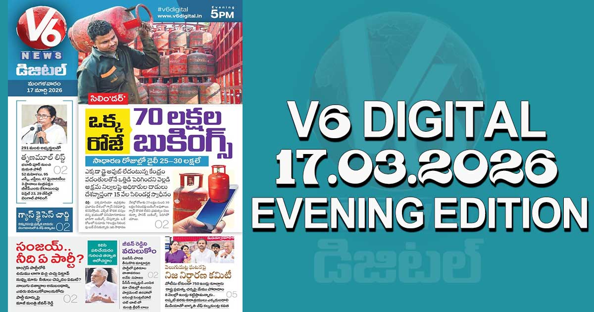 Reading Time: < 1 minute V6 DIGITAL 17.03.2026 EVENING EDITION Caption of Image. గ్యాస్ ప్యానిక్ కంటిన్యూ.. ఒక్కరోజే 70 లక్షల బుకింగ్స్! అసెంబ్లీలో పార్టీ ఫిరాయింపులపై చర్చ..ఎవరేమన్నారంటే? పార్టీ మార్పుపై మాజీ మంత్రి జీవన్ రెడ్డి సంచలన వ్యాఖ్యలు *ఇంకా మరెన్నో.. క్లిక్ చేయండి* Post navigation యశోద ఆస్పత్రిలో 10 తులాల బంగారం ఎత్తుకెళ్లిన కిలాడీ లేడీ అరెస్ట్ గొంతులో రసగుల్లా ఇరుక్కుని కూడా మనిషి చనిపోతాడా.. దేశంలో ఫస్ట్ టైం ఇలా..!