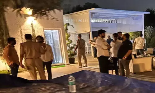 మొయినాబాద్ ఫాం హౌస్లో కలకలం రేపిన డ్రగ్స్ పార్టీ కేసుకు సంబంధించిన పూర్తి వివరాలను ఆదివారం ఈగిల్ అధికారులు బృందం ఓ ప్రకటనలో వెల్లడించారు. ఫాం హౌస్లో మాదకద్రవ్యాలు, సైకోట్రోపిక్ పదార్థాలతో పాటు పెద్ద మొత్తంలో మద్యంతో పార్టీని జరుపుకుంటున్నట్లు అధికారులకు సమాచారం అందండంతో పోలీసు బృందం ఫామ్హౌస్ ఆవరణను చుట్టుముట్టామని, ఒక మహిళతో సహా 11 మంది వ్యక్తులు మద్యం, మాదకద్రవ్యాలు, సైకోట్రోపిక్ పదార్థాలను సేవిస్తున్నట్లు గుర్తించామన్నారు. పోలీసులు లోపలికి వెళుతున్న క్రమంలో తుపాకీ కాల్పులు జరిగాయన, పోలీస్లు కాల్పులు ఆపాలని హెచ్చరించడంతో కాల్పులు ఆగిపోయాయని తెలిపారు.