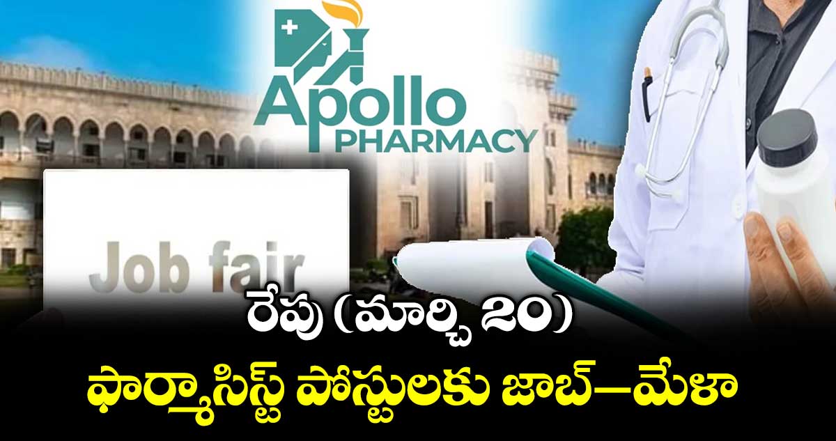 హైదరాబాద్ సిటీ, వెలుగు: ఉస్మానియా యూనివర్సిటీలోని ఎంప్లాయిమెంట్ బ్యూరో అపోలో ఫార్మసీ ఆధ్వర్యంలో ఫార్మసిస్టు పోస్టులకు ఈ నెల 20న ఉదయం 11 గంటలకు ఆర్ట్స్ కాలేజీ ఎదురుగా ఉన్న ఎంప్లాయిమెంట్ బ్యూరో ఆఫీసులో జాబ్ మేళా నిర్వహించనున్నారు. అపోలో ఫార్మసీ లోని ఫార్మాసిస్టు, అసిస్టెంట్ ఫార్మసిస్ట్ లకు చెందిన 100 పోస్టులను ఈ జాబ్ మేళా ద్వారా భర్తీ చేయనున్నారు. మరిన్ని వివరాలకు హెచ్ఆర్ టి. రఘుపతిని 8247656356 నంబర్లో సంప్రదించాలని నిర్వాహకులు సూచించారు.