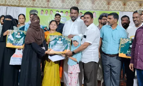 ధర్మపురి: కాంగ్రెస్ పార్టీ సెక్యులర్ పార్టీ అని దేశంలో అన్ని మతాలను కులాలను గౌరవించే పార్టీ కాంగ్రెస్ పార్టీ అని రాష్ట్ర సాంఘిక సంక్షేమ శాఖ మంత్రి అన్నారు. రంజాన్ పండుగ సందర్బంగా ముస్లీం సోదర, సోదరిమణులకు గురువారం ధర్మపురి పట్టణంలోని ఎస్ఎచ్ గార్డెన్ లో తోఫా పంపిణీ కార్యక్రమంలో మంత్రి అడ్లూరి లక్ష్మణ్ కుమార్ పాల్గొన్నారు.