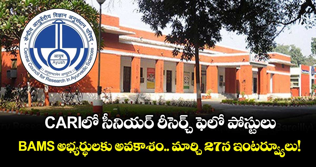 సీఏఆర్ఐ సీనియర్ రీసెర్చ్ ఫెలో పోస్టుల భర్తీకి నోటిఫికేషన్ విడుదల చేసింది. బీఏఎంఎస్ పూర్తిచేసిన అభ్యర్థులు వాక్-ఇన్ ఇంటర్వ్యూకు హాజరు కావచ్చు.