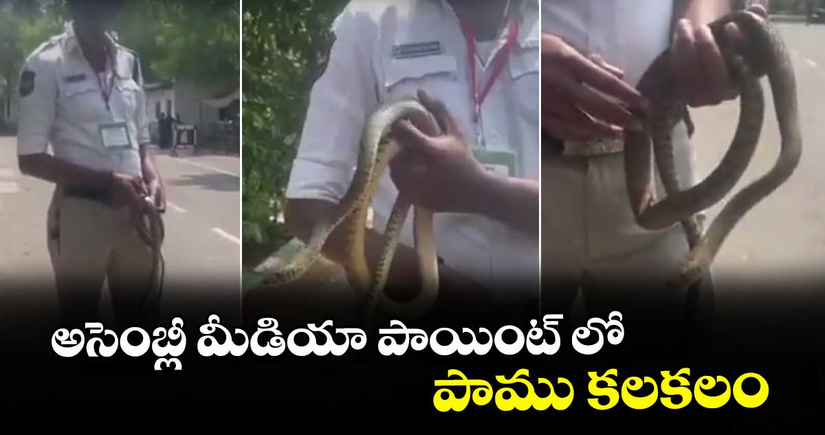 అసెంబ్లీ ఆవరణలో శుక్రవారం ( మార్చి 20)న ఒక్కసారిగా కలకలం రేగింది. మీడియా పాయింట్ దగ్గర ఒక పాము ప్రత్యక్షం కావడంతో అక్కుడున్న వారు పరుగులు తీశారు.అయితే ఆ పామును విధుల్లో ఉన్న కానిస్టేబుల్ పట్టుకుని బయట వదిలిపెట్టారు. కానిస్టేబుల్ ధైర్యంగా సమయస్ఫూర్తితో వ్యవహరించడంతో అక్కడ ఉన్న మీడియా సిబ్బంది ఊపిరి పీల్చుకున్నారు.