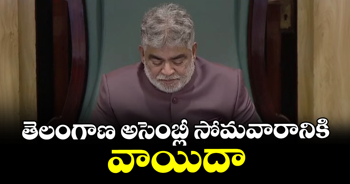 తెలంగాణ అసెంబ్లీని సోమవారానికి (మార్చి 23) వాయిదా వేశారు స్పీకర్ గడ్డం ప్రసాద్ కుమార్. శుక్రవారం (మార్చి 20) బడ్జెట్ ప్రసంగం పూర్తయిన తర్వాత అసెంబ్లీని వాయిదా వేస్తున్నట్లు ప్రకటించారు. బీఆర్ఎస్ సభ్యుల నిరసనల మధ్య శాశసన సభను వాయిదా వేశారు.