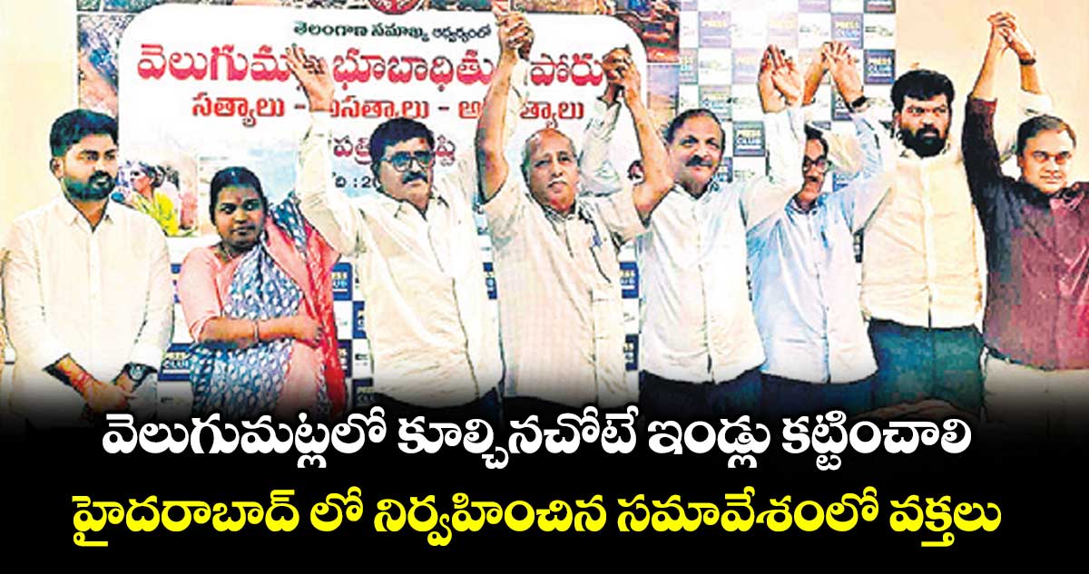 పంజాగుట్ట, వెలుగు : వెలుగుమట్ల వినోభా కాలనీలో కూల్చిన చోటే ఇండ్లు నిర్మించి బాధితులకు అప్పగించాలని, బాధితులపై పెట్టిన కేసులను ఎత్తివేసి, వారిని విడుదల చేయాలని పలువురు డిమాండ్ చేశారు. ‘వెలుగుమట్ల భూ బాధితుల పోరుపై సత్యాలు, అసత్యాలు, అర్ధసత్యాలు’ అనే అంశంపై తెలంగాణ సమాఖ్య కన్వీనర్ కరుణాకర్ దేశాయి ఆధ్వర్యంలో శుక్రవారం సోమాజీగూడ ప్రెస్క్లబ్లో పత్రికా గోష్ఠి నిర్వహించారు.