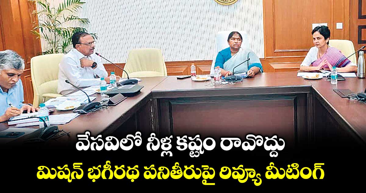 ముందస్తు సమాచారం లేకుండా సరఫరా నిలిపివేస్తే ప్రజలు ఇబ్బంది పడతారు. ఇలాంటివి పునరావృతం కాకూడదు. ఉపాధి హామీ పథకం కింద చెరువులు, కుంటలు తవ్వి భూగర్భ జలమట్టాలను పెంచాలి. ప్రతి గ్రామానికి నిరంతరాయంగా నీరు అందించడమే మన ప్రభుత్వ లక్ష్యం” అని ఆమె పేర్కొన్నారు. సమావేశంలో పంచాయతీరాజ్, గ్రామీణాభివృద్ధిశాఖ డైరెక్టర్ దివ్య దేవరాజన్, ఈఎన్సీ కృపాకర్ రెడ్డి, చీఫ్ ఇంజినీర్లు, ఇతర సిబ్బంది పాల్గొన్నారు.