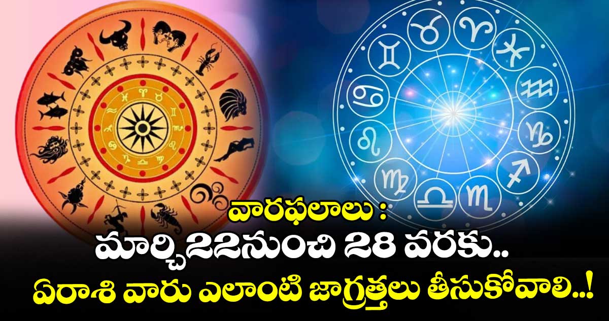 వారఫలాలు ( మార్చి 22–28 ): జ్యోతిష్య నిపుణులు తెలిపిన వివరాల ప్రకారం.. ఈ వారం 12 రాశుల వారి వ్యక్తిగత జీవితానికి సంబంధించి ఎలా ఉండబోతుందో తెలుసుకుందాం. . .!