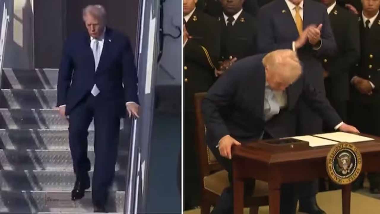 ఇదిలావుంటే, ఇటీవల జరిగిన ఒక వేడుకకు సంబంధించిన మరో వీడియోలో ట్రంప్ కూర్చోవడానికి ముందు తనను తాను నిలదొక్కుకుంటున్నట్లు కనిపించడంతో చర్చ మరింత తీవ్రమైంది. ఆ ఫుటేజీలో, అతను రెండు చేతులతో బల్లను పట్టుకుని కుర్చీలో కూర్చున్నారు. మోకాళ్లు వంచుతున్నప్పుడు అతని ముఖం క్షణకాలం బిగుసుకుపోయింది. ఆ క్షణం కొన్ని సెకన్ల పాటు మాత్రమే ఉన్నప్పటికీ, అది విస్తృతంగా షేర్ చేయడంతో, కొనసాగుతున్న చర్చకు మరింత ఆజ్యం పోసింది.