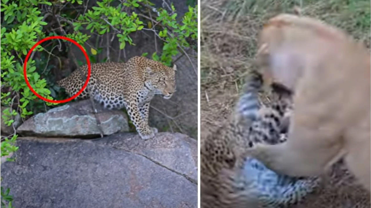 చిరుత చేసిన ఈ మెరుపు దాడికి సింహం కొంత కంగారు పడింది. ఈ కొద్దిపాటి సమయాన్ని ఉపయోగించుకున్న చిరుత పిల్లలు సురక్షితంగా పొదల్లోకి పారిపోయి దాక్కున్నాయి. తన పిల్లలు క్షేమంగా ఉన్నారని నిర్ధారించుకున్న తర్వాత, ఆ చిరుత అత్యంత చాకచక్యంగా సింహం పట్టు నుండి తప్పించుకుని దగ్గరలోని ఎత్తైన చెట్టుపైకి ఎక్కి కూర్చుంది.