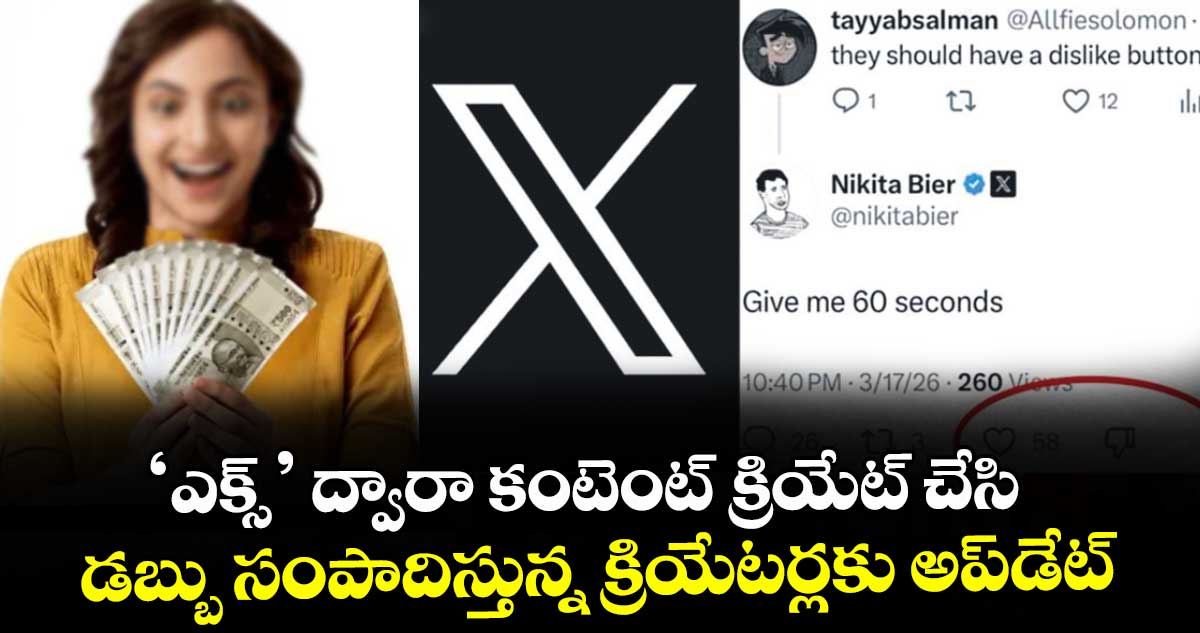 ఎక్స్ ద్వారా కంటెంట్ క్రియేట్ చేసి డబ్బు సంపాదిస్తున్న క్రియేటర్లకు ఒక అప్డేట్ వచ్చింది. ఇక నుంచి మానిటైజేషన్ కావాలంటే ఈ రూల్స్ పాటించాల్సిందే అంటోంది ఆ కంపెనీ. స్పామ్ కంటెంట్ పబ్లిష్ చేస్తే మానిటైజేషన్ అవ్వదు. ఇప్పటివరకు వివాదాస్పద లేదా మిస్లీడ్ చేసే పోస్ట్లు, స్పామ్ కామెంట్స్తో వ్యూస్, ఎంగేజ్మెంట్ను షేర్ చేశారు. వాటి ద్వారా లేదా ఇతర సోర్సెస్ నుంచి డబ్బు సంపాదించారు. అయితే, రాబోయే నెల రోజుల్లో ప్లాట్ఫామ్పై స్పామింగ్ ద్వారా డబ్బులు రావడం తగ్గిపోతుంది.