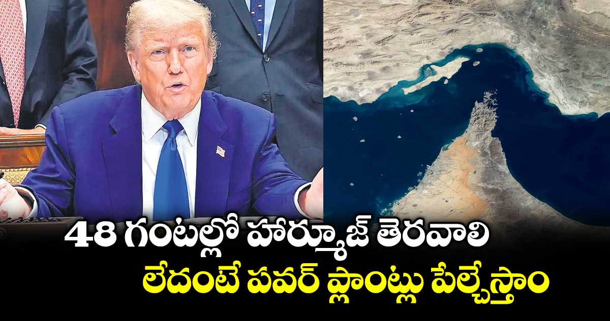 వాషింగ్టన్/టెహ్రాన్: ప్రపంచ చమురు సరఫరాలో ఐదో వంతు వాటా కలిగిన హార్మూజ్ జలసంధిని నౌకల రాకపోకల కోసం వెంటనే తెరవాలని, లేనిపక్షంలో ఇరాన్ పవర్ ప్లాంట్లపై దాడులు చేసి సర్వనాశనం చేస్తామని అమెరికా అధ్యక్షుడు డొనాల్డ్ ట్రంప్ హెచ్చరించారు. ట్రంప్ అల్టిమేటంపై స్పందించిన ఇరాన్ సైన్యం.. గల్ఫ్ ప్రాంతంలోని అమెరికాకు చెందిన ఇంధన, సాంకేతిక, మంచి నీటి శుద్ధి (డీశాలినేషన్) మౌలిక సదుపాయాలన్నింటినీ లక్ష్యంగా చేసుకుంటామని ప్రతి హెచ్చరిక జారీ చేసింది. ట్రంప్ ఆదివారం ఉదయం 5 గంటలకు తన ‘ట్రూత్ సోషల్’ వేదికగా స్పందించారు. ఆ క్షణం నుంచి సరిగ్గా 48 గంటల గడువు విధిస్తూ ఇరాన్కు సందేశం పంపారు. భారత కాలమానం ప్రకారం మంగళవారం ఉదయం వరకు ఈ గడువు ఉంటుంది. “ఎలాంటి బెదిరింపులు లేకుండా 48 గంటల లోపు హార్మూజ్ జలసంధిని ఇరాన్ పూర్తిగా తెరవాలి. లేదంటే అమెరికా ఆ దేశంలోని పవర్ ప్లాంట్లపై దాడులు చేస్తుంది. అన్నిటికంటే పెద్ద పవర్ ప్లాంట్ నుంచి ఈ ధ్వంసం మొదలవుతుంది” అని ట్రంప్ స్పష్టం చేశారు. దీనిపై ఇరాన్ సైనిక విభాగం ‘ఖాతమ్ అల్-అన్బియా’ స్పందిస్తూ.. ‘‘శత్రువు మా ఇంధన వనరులపై దాడికి దిగితే, ఈ ప్రాంతంలోని అమెరికా, ఇజ్రాయెల్ ప్రభుత్వాలకు చెందిన ఇంధన, సమాచార సాంకేతిక, మౌలిక సదుపాయాలన్నింటినీ ధ్వంసం చేస్తాం’’ అని ఏఎఫ్పీ వార్తా సంస్థ ద్వారా హెచ్చరించింది. యుద్ధాన్ని ముగిస్తానని ట్రంప్ ప్రకటించిన ఒక్క రోజులోనే ఈ స్థాయిలో హెచ్చరికలు రావడం ఉద్రిక్తతలను మరింతగా పెంచింది.