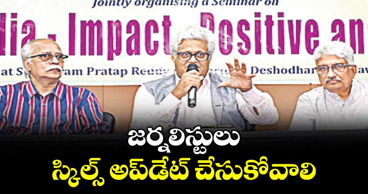 బషీర్బాగ్, వెలుగు: టెక్నాలజీకి అనుగుణంగా జర్నలిస్టులు తమ స్కిల్స్ను అప్డేట్ చేసుకోవాలని స్వతంత్ర వార్తా సంస్థ ది వైర్ ఫౌండింగ్ ఎడిటర్ ఎం.కె.వేణు సూచించారు. విజయవాడలో జరగనున్న ఐజేయూ జాతీయ ప్లీనరీని పురస్కరించుకొని ఆదివారం హైదరాబాద్ ప్రెస్ క్లబ్లో టీయూడబ్ల్యూజే, మెఫీ సంయుక్తంగా నిర్వహించిన సోషల్ మీడియా ఇంపాక్ట్, పాజిటివ్, నెగెటివ్ సదస్సుకు ఆయన ముఖ్య అతిథిగా హాజరై, మాట్లాడారు.