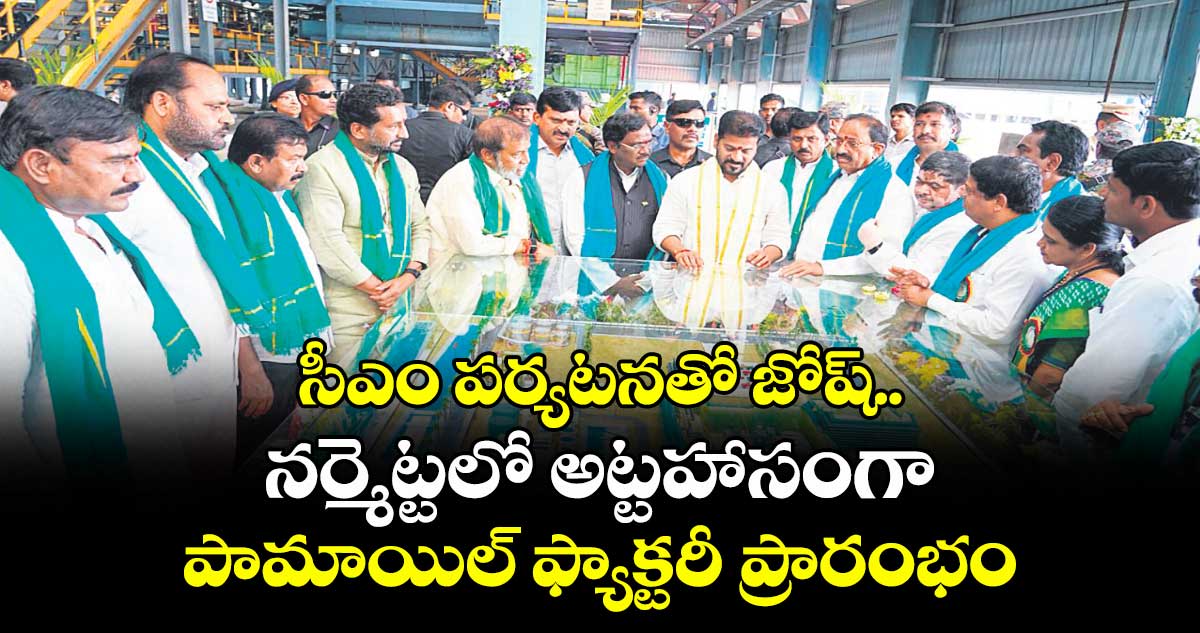 సిద్దిపేట, వెలుగు: సిద్దిపేట జిల్లా నర్మెట్టలో సీఎం రేవంత్రెడ్డి పర్యటన ఉత్సాహంగా సాగింది. ఆదివారం నర్మెట్టలో రూ.300 కోట్లతో నిర్మించిన పామాయిల్ ఫ్యాక్టరీని మంత్రులు వివేక్ వెంకటస్వామి, తుమ్మల నాగేశ్వరరావు, పొన్నం ప్రభాకర్, పొంగులేటి శ్రీనివాస్రెడ్డి, దామోదర రాజనర్సింహతో కలిసి ప్రారంభించారు. నర్మెట్టకు చేరుకున్న సీఎంకు మంత్రులు, అధికారులు స్వాగతం పలికారు.
