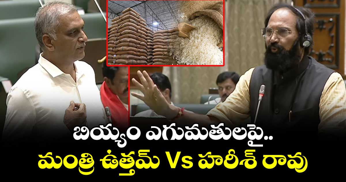 బియ్యం ఎగుమతులపై తెలంగాణ అసెంబ్లీలో మంత్రి ఉత్తమ్ కుమార్ రెడ్డి, హరీశ్ రావు మధ్య మాటల యుద్ధం సాగింది. ఫిలిప్ఫైన్ తో కు బియ్యం ఎగుమతుల్లో భారీ కుంభకోణం జరిగిందని హరీశ్ రావు ఆరోపించారు.