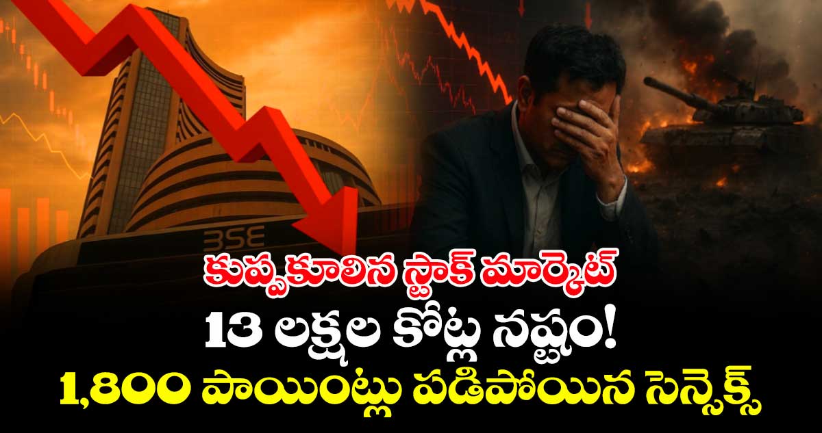 భారత స్టాక్ మార్కెట్ ఈరోజు భారీ పతనాన్ని చూస్తోంది. పశ్చిమ ఆసియాలో పెరుగుతున్న ఉద్రిక్తతలు ఆసియా మార్కెట్లో పతనానికి దారితీశాయి. ఈ ప్రభావం భారత స్టాక్ మార్కెట్పై కూడా కనిపిస్తోంది. ఉదయం ట్రేడింగ్ ప్రారంభంలో బీఎస్ఈ సెన్సెక్స్ 1,500 పాయింట్లకు పైగా పడిపోగా, నేషనల్ స్టాక్ ఎక్స్ఛేంజ్ నిఫ్టీ కూడా 500 పాయింట్లకు పైగా క్షీణించింది. దింతో ఉదయం 10:26 గంటలకు, బీఎస్ఈ సెన్సెక్స్ 1800.42 పాయింట్లు (2.42%) పడిపోయి 72,732.54 వద్ద ఉండగా…. నిఫ్టీ కూడా 574.35 పాయింట్లు (2.48%) పడిపోయి 22,540.15కి జారింది. ఈ పతనం కారణంగా, బీఎస్ఈలో నమోదైన కంపెనీల మార్కెట్ క్యాప్ సుమారు రూ.13 లక్షల కోట్లు తగ్గి రూ.416 లక్షల కోట్లకు పడిపోయింది.