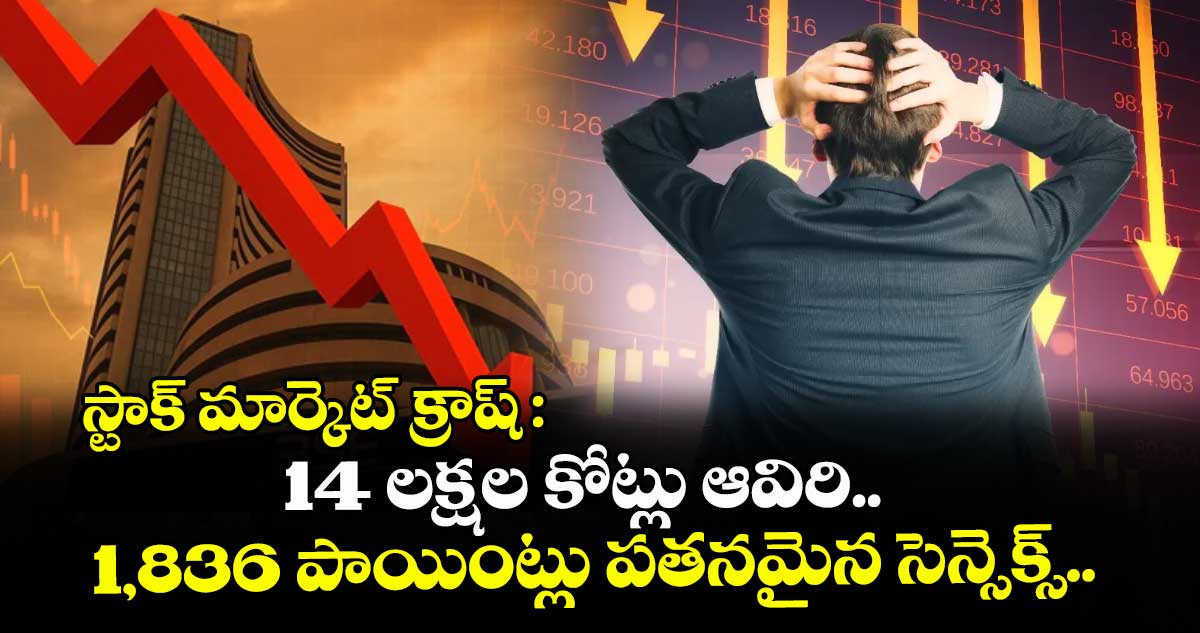 స్టాక్ మార్కెట్ ఈరోజు భారీగా పతనమైంది. పశ్చిమ ఆసియాలో పెరుగుతున్న ఉద్రిక్తతలు ఆసియా మార్కెట్లలో క్షీణతకు దారితీసి, దేశీయ స్టాక్ మార్కెట్పై ప్రభావం చూపాయి. స్టాక్ మార్కెట్ ముగిసీ సమయానికి బీఎస్ఈ సెన్సెక్స్ 1,900 పాయింట్లకు పైగా పడిపోగా, నేషనల్ స్టాక్ ఎక్స్ఛేంజ్ నిఫ్టీ కూడా 600 పాయింట్లకు పైగా క్షీణించి 1836.57 పాయింట్లు (2.46%) నష్టపోయి 72,696.39 వద్ద ముగిసింది. నిఫ్టీ 601.85 పాయింట్లు (2.6%) నష్టపోయి 22,512.65 వద్ద ముగిసింది. దింతో బీఎస్ఈలో లిస్టెడ్ కంపెనీల మార్కెట్ క్యాప్ 14 లక్షల కోట్లు తగ్గి రూ.414.76 లక్షల కోట్లకు పడిపోయింది.