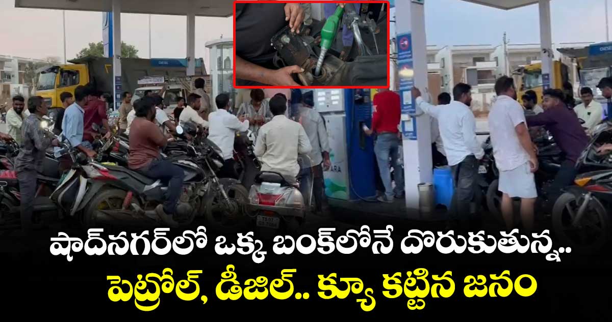 షాద్నగర్: పశ్చిమాసియా ప్రాంతంలో ఉద్రిక్త పరిస్థితుల ప్రభావంతో రంగారెడ్డి జిల్లా షాద్నగర్ పట్టణంలో ఇంధన కొరత తీవ్రంగా కనిపిస్తోంది. పట్టణంలో ఉన్న పలువురు పెట్రోల్ బంకులు మూతపడగా, కేవలం కొత్తపేట రోడ్డులోని ఒక్క బంక్లో మాత్రమే పెట్రోల్, డీజిల్ లభిస్తున్నాయి. దీంతో వాహనదారులు భారీగా అక్కడికి చేరుకొని బారులు తీరుతున్నారు.
