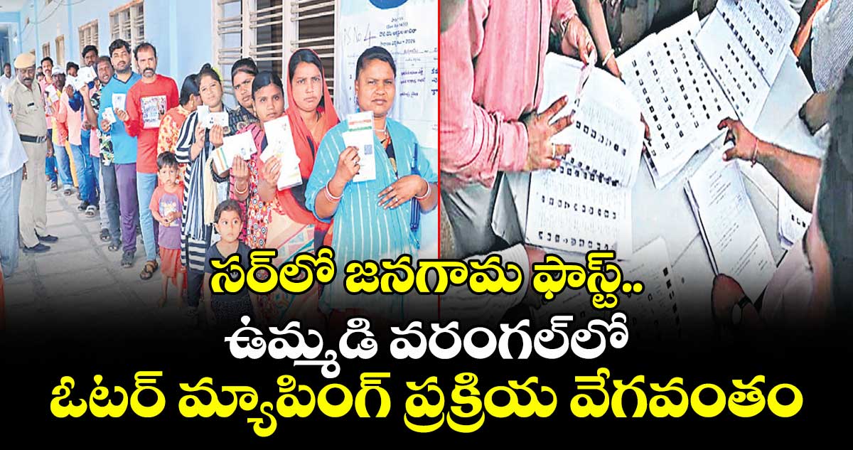2002–2025 ఓటరు జాబితా మ్యాపింగ్ స్పీడ్గా సాగుతోంది. ఈ రెండు లిస్ట్ల పరిశీలనతో ఉమ్మడి వరంగల్ జిల్లాలో 70.67 శాతం ఓటర్లను మ్యాపింగ్ చేశారు. ఈ మ్యాపింగ్లో ఉమ్మడి జిల్లాలో జనగామ జిల్లా మొదటి స్థానంలో నిలవగా, రెండు, మూడు స్థానాల్లో మహబూబాబాద్, ములుగు ఉన్నాయి. చివరి మూడు స్థానాల్లో జయశంకర్ భూపాలపల్లి, హనుమకొండ, వరంగల్ జిల్లాలు నిలిచాయి.