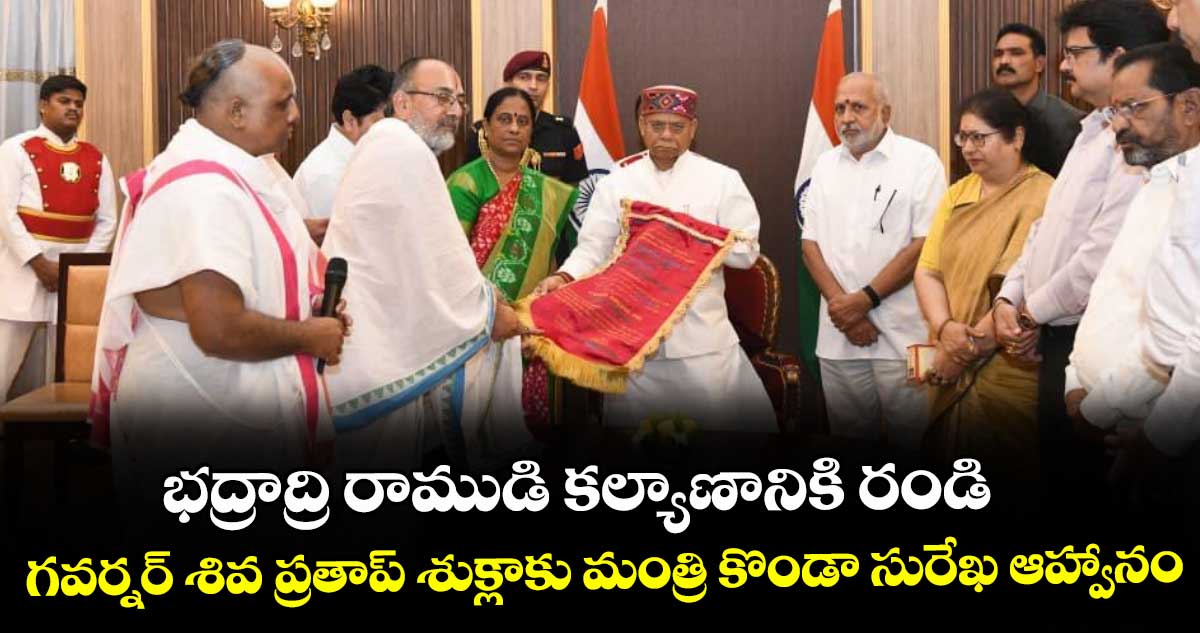 హైదరాబాద్, వెలుగు: భద్రాచలం సీతారాముల కల్యాణ మహోత్సవానికి రావాలని గవర్నర్ శివ ప్రతాప్ శుక్లాను మంత్రి కొండా సురేఖ ఆహ్వానించారు. సోమవారం లోక్ భవన్లో గవర్నర్ను మర్యాదపూర్వకంగా కలిశారు.