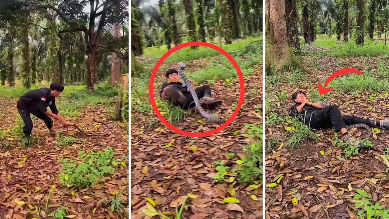 సోషల్ మీడియాలో వైరల్ కావాలనే పిచ్చితో కొందరు యువకులు తమ ప్రాణాలను ఫణంగా పెడుతున్నారు. తాజాగా ఒక యువకుడు భారీ పాముతో చేసిన సాహసం అతడిని మృత్యువు అంచుల దాకా తీసుకెళ్లింది. వైరల్ వీడియోలో ఒక దట్టమైన అడవి మధ్యలో ఒక యువకుడు భారీ పామును ఆటపట్టిస్తుంటాడు. ఆ దృశ్యం చూసేవారి గుండె ఒక్కసారిగా ఆగిపోయేలా చేస్తుంది. దీనికి సంబంధించిన షాకింగ్ వీడియో ప్రస్తుతం నెట్టింట వైరల్గా మారింది. అసలేం జరిగిందంటే?