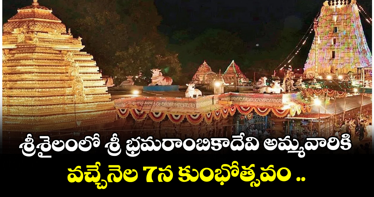 శ్రీశైలంలో వచ్చే నెల 7వ తేదీన శ్రీభ్రమరాంబాదేవికి వార్షిక కుంభోత్సవం నిర్వహించనున్న దేవస్థానం ప్రతి ఏడాది చైత్రమాసం పౌర్ణమి తర్వాత భ్రమరాంబాదేవికి వార్షిక కుంభోత్సవం జరపడం ఆనవాయితీగా వస్తుంది. ఈ నేపథ్యంలో ఆలయంలో కుంభోత్సవ ప్రక్రియ కొనసాగుతోంది. ఈ ప్రక్రియలో చైత్రమాసం వరకు వచ్చే ప్రతి శుక్రవారం,మంగళవారం అమ్మవారికి కొబ్బరికాయలు సమర్పించడం ఆనవాయితీగా వస్తుంది.