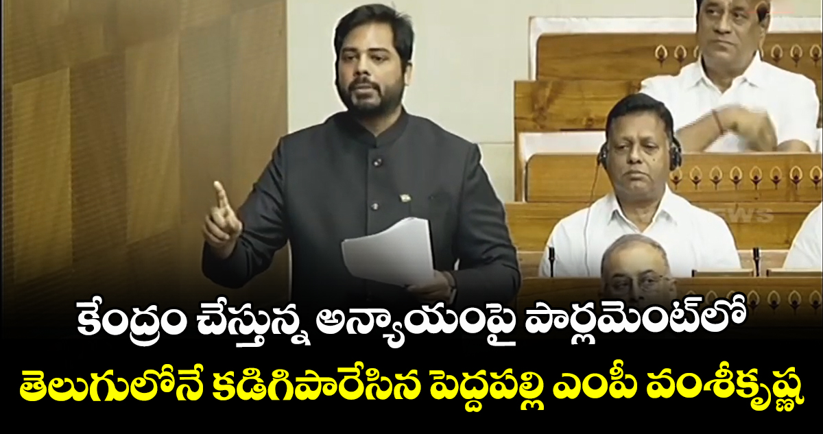 ఢిల్లీ: పెద్దపల్లి కాంగ్రెస్ ఎంపీ గడ్డం వంశీకృష్ణ లోక్ సభలో తెలంగాణకు జరుగుతున్న అన్యాయంపై కేంద్ర ప్రభుత్వాన్ని నిలదీశారు. పెద్దపల్లి పార్లమెంట్ నియోజకవర్గంలో ఎన్టీపీసీ ఉందని, RFCL ఉందని, సింగరేణి ఉందని.. మొత్తంగా రూ.25 వేల కోట్ల నుంచి రూ.30 వేల కోట్ల వరకూ కేంద్ర ప్రభుత్వానికి తాము అందిస్తున్నామని.. కానీ కేంద్రం నుంచి వంద కోట్లు, రూ.150 కోట్లకు మించి తమకు తిరిగి రావడం లేదని చెప్పారు.