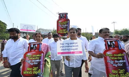 రాష్ట్రంలో గ్యాస్ కొరతతో సామాన్యులు, చిరు వ్యాపారులు, వృద్ధాశ్రమాలు,హాస్టళ్లు, హోటల్స్ నిర్వాహకులు ఇబ్బందులు పడుతున్న నేపథ్యంలో సకాలంలో గ్యాస్ అందేలా కేంద్ర, రాష్ట్ర ప్రభుత్వాలు వెంటనే చర్యలు చేపట్టేందుకు శాసనసభ, శాసన మండలిలో దీనిపై తక్షణమే చర్చ జరగాలని మంగళవారం బిఆర్ఎస్ శాసనసభా పక్షం వాయిదా తీర్మానాలు ఇచ్చింది. ఈ మేరకు గన్పార్క్ వద్ద బిఆర్ఎస్ ఎంఎల్ఎలు, ఎంఎల్సిలు ఆందోళన చేపట్టారు. కేంద్ర రాష్ట్ర ప్రభుత్వాలు దొంగ నాటకాలు ఆపండి వెంటనే గ్యాస్ ఇవ్వండి..కేంద్ర చెబుతోంది కొరత లేదు, రాష్ట్ర చెబుతుఓంది సప్లై లేదు..ఏదీ నిజం..? అంటూ ప్లకార్డులు ప్రదర్శించి నిరసన తెలిపారు.ఈ నిరసనలో బిఆర్ఎస్ ఎంఎల్ఎలు కెటిఆర్, సబితా ఇంద్రారెడ్డి, తలసాని శ్రీనివాస్ యాదవ్, పాడి కౌశిక్రెడ్డి, సుధీర్రెడ్డి, మదుసూదనాచారితో పాటు పార్టీ ఎంఎల్ఎలు, ఎంఎల్సిలు పాల్గొన్నారు.ఈ సందర్భంగా కెటిఆర్ మాట్లాడుతూ, ఇరాన్ ఇజ్రాయెల్ అమెరికా యుద్ధం కారణంగా దేశవ్యాప్తంగా గ్యాస్ కొరత ఎక్కువైందని ఆందోళన వ్యక్తం చేశారు. ఆంబోతుల కొట్లాటలో లేగదూడలు బలైనట్లు