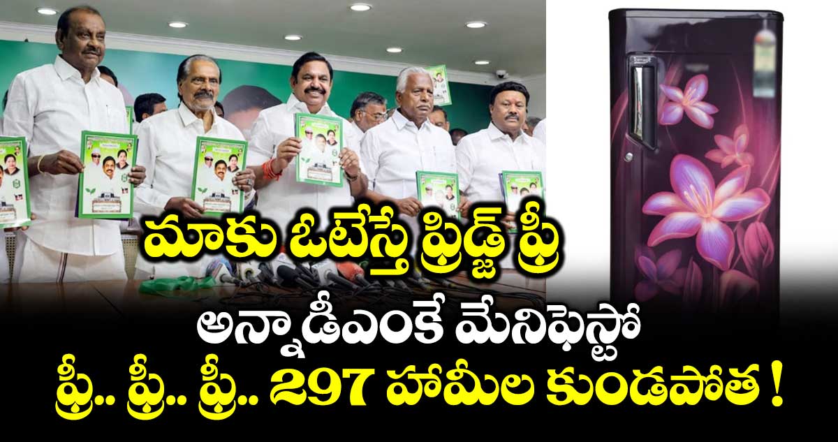 అన్నాడీఎంకే ప్రకటించిన మేనిఫెస్టోను తూచాతప్పకుండా అమలు చేయాలంటే సంవత్సరానికి రూ.38 వేల 314 కోట్లు ఖర్చు చేయాల్సి ఉంటుంది. తమిళనాడులో రైస్ రేషన్ కార్డు ఉన్న 2 కోట్ల 22 లక్షల మందికి ఫ్రీ రిఫ్రిజిరేటర్.. అదేనండీ ఫ్రిడ్జ్తో పాటు సంవత్సరానికి మూడు గ్యాస్ సిలిండర్లు ఉచితంగా ఇస్తామని మేనిఫెస్టోలో అన్నాడీఎంకే ప్రకటించింది. ఎడ్యుకేషన్ లోన్స్ మాఫీ చేస్తామని ప్రకటించింది.