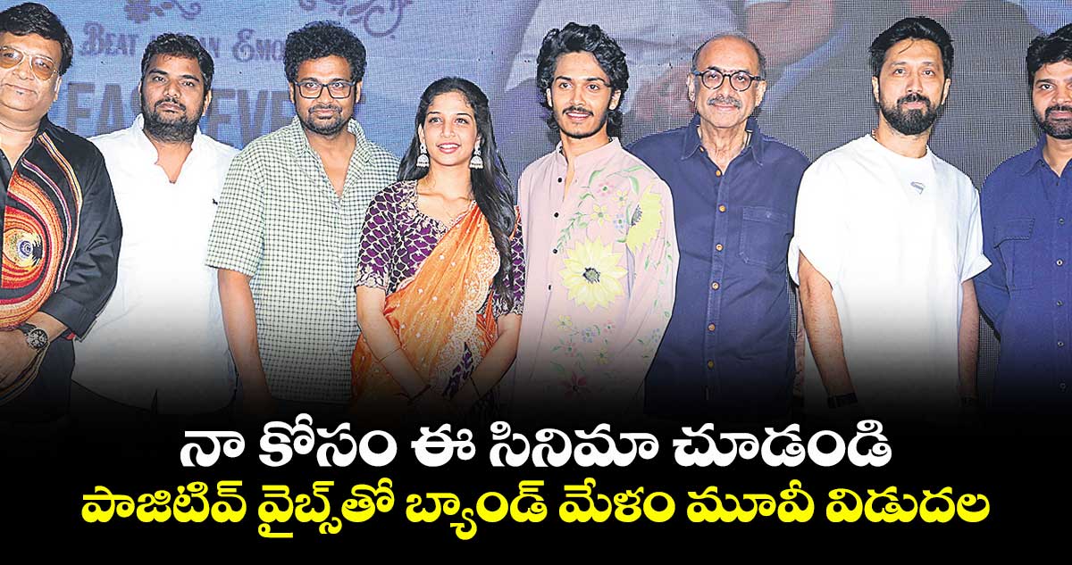 ‘కోర్ట్’ చిత్రంతో సక్సెస్ అందుకున్న హర్ష్ రోషన్, శ్రీదేవి జంటగా నటించిన మరో చిత్రం ‘బ్యాండ్ మేళం’. మ్యాంగో మాస్ మీడియా సమర్పణలో కోన వెంకట్ నిర్మించారు. సతీష్ జవ్వాజీ దర్శకత్వం వహించాడు. మార్చి 26న సినిమా రిలీజ్ కానుంది. సోమవారం ప్రీ రిలీజ్ ఈవెంట్ను నిర్వహించారు. ఈ వేడుకకు హీరో శ్రీవిష్ణు, రైటర్ విజయేంద్ర ప్రసాద్, డైరెక్టర్స్ వీవీ వినాయక్, బాబీ, నిర్మాతలు సురేష్ బాబు, బండ్ల గణేష్ అతిథులుగా హాజరై పాజిటివ్ వైబ్స్తో రాబోతున్న ఈ సినిమా కచ్చితంగా విజయం సాధిస్తుందని అన్నారు.