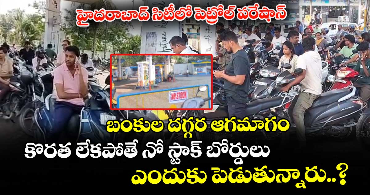 హైదరాబాద్ సిటీ అంతా పెట్రోల్ పరేషాన్ నడుస్తోంది. ఎవరి నోట విన్నా పెట్రోల్, డీజిల్ మాటలే.. రోడ్డెక్కిన తర్వాత ఏ బంకు దగ్గర చూసినా క్యూలు. వందల సంఖ్యలో కార్లు, బైక్స్ పెట్రోల్, డీజిల్ కోసం క్యూలు. హైదరాబాద్ సిటీ పెట్రోల్ పరేషాన్ నడుస్తుంది.